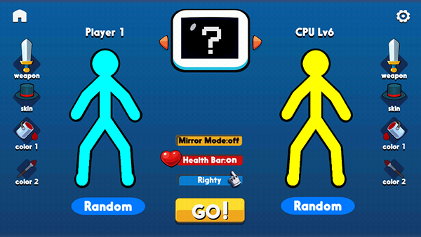 决斗火柴人游戏支持2-4名玩家进行在线对战,玩家可以操控任意单位,通过物理效果进行攻击和防御等一系列操作。决斗火柴人游戏战斗中除了可以充分利用物理特性及各色创意地图等改变局势,更多的是考验你和小伙伴们之间的默契与配合,是同生共死还是菜鸟互坑,这是一场别开生面的友谊挑战赛,你敢应战吗?