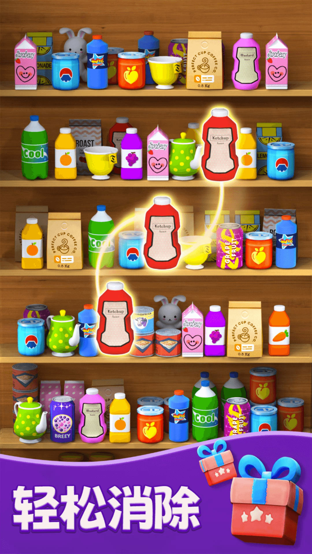 3、操作十分简略,只需求轻触屏幕,即可对货柜中的物品进行收拾和消除;
