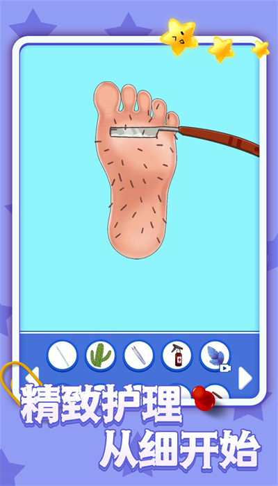 1.不断尝试各种各样的治疗方案,在治疗疾病之前,首先玩家要用各种工具将脚皮去除下来。