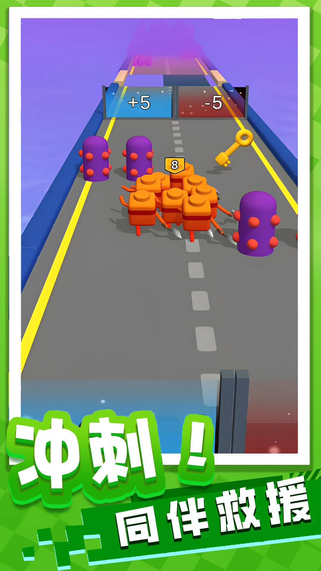 1、玩家控制主角奔跑并收集相同数字的小角色,随着游戏的进行,这增加了每个关卡的难度。