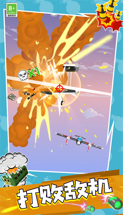 2、激烈无比的玩法,通过更多的关卡解锁全新的炫酷战机。