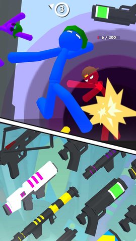 1、是一款动作类游戏,玩家在游戏中扮演一位火柴人英雄,