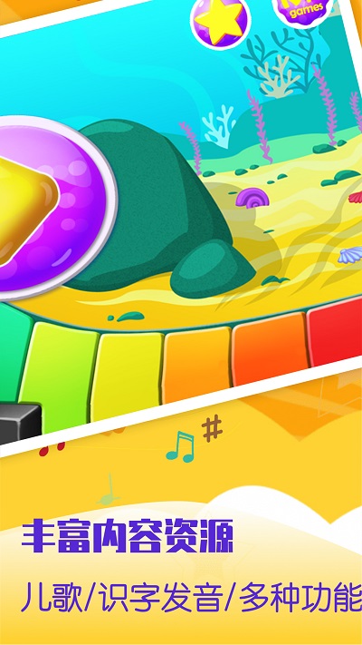 以游戏的形式,你会知道这个乐器的声音,可以学习音符,了解什么是音调,八度等等;