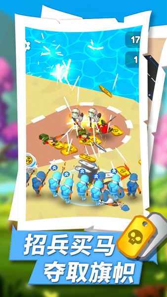 可以建立自己的卡通军队,主动进攻其他岛屿掠夺资源。