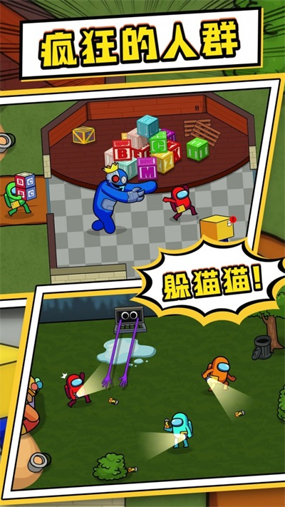 疯狂的人群这是一款躲猫猫类型的多人大乱斗游戏,玩家需要逃离追捕来生存下去,并收获最后的游戏奖励。游戏关卡简单但需要动脑闯关,还有魔性好玩的挑战,游戏氛围紧张刺激。画面效果绚丽无比,操作方式困难需要流畅的控制,同时可以邀请小伙伴一起闯关。