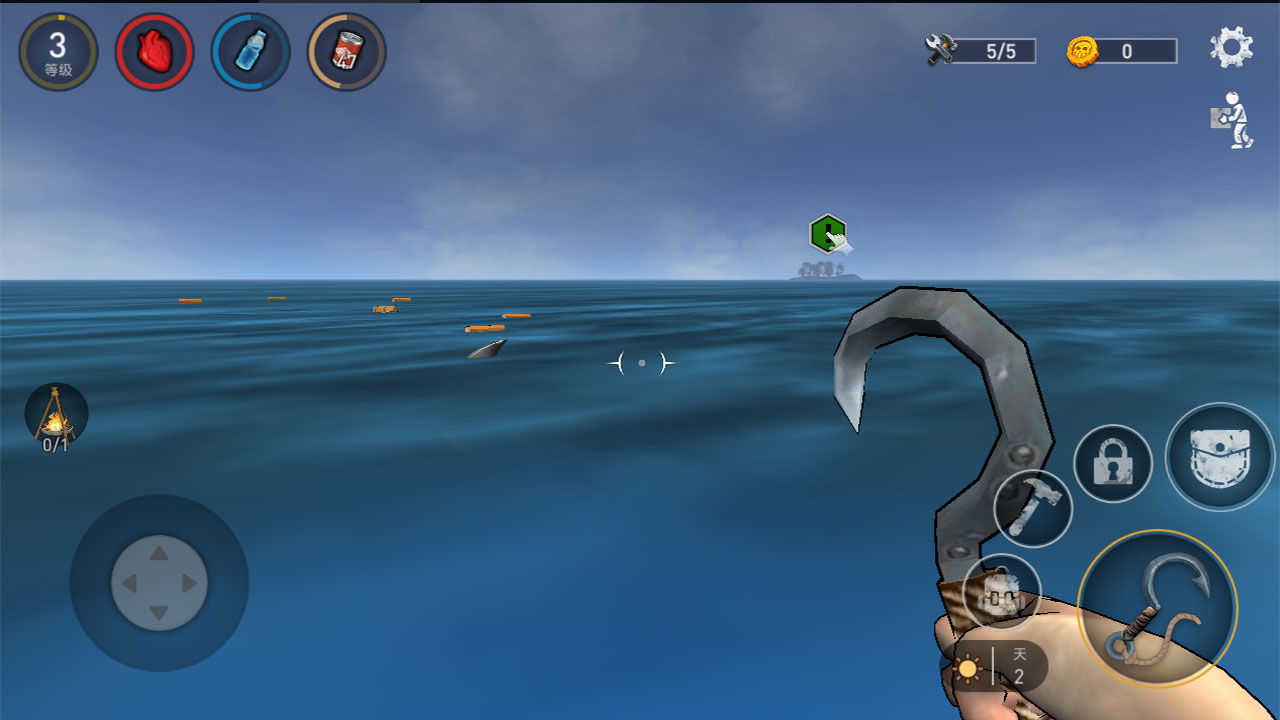 玩法还是比较简单的,我们在一个木筏上,需要拿着手上的钩子,不断的用钩子拿取海上的物资,用它们来进行求生!