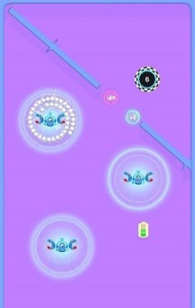 3、你只需要拖动屏幕吸收小球,使其穿过不同颜色的圆环,避开跳跃的障碍物和旋转的障碍物。