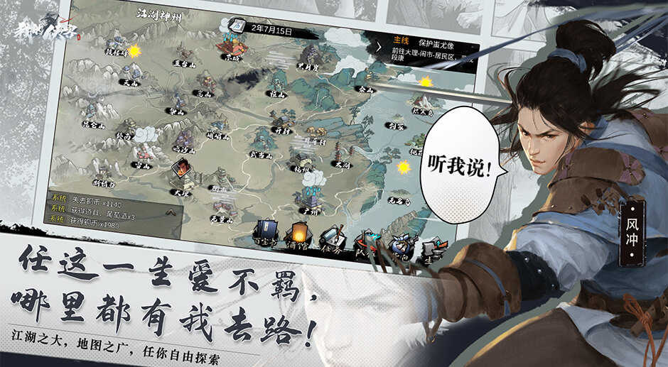 玩家所扮演的主角可自由在江湖世界中行走闯荡。