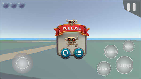 2、左下角按钮控制茶杯头自由移动,右侧分别是Crouch弯腰潜行,Vision切换视角,Attack进攻以及Jump跳跃等四个基本动作。