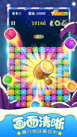 3、更有增加消除难度的完美消除玩法一萌星解谜,关卡内星星摆放成各种不同的可爱造型,造型虽可爱想要消除却需要玩家开动脑筋