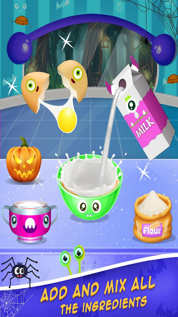 5、让我们烘焙出许多带有毛骨悚然的装饰的美味怪兽蛋糕,带来更多乐趣。