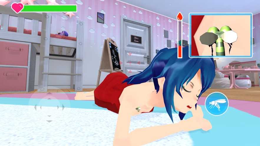 游戏中玩家们将要扮演一只蚊子,对蚊子,虽然在夏日里我们看到这种东西恨得痒痒的,但这次你的任务是要从少女身上吸饱血液。你要成为吸血传说里的怪物,但你不是一支百年吸血鬼,而是害虫蚊子,在房间寻找美女,如果她睡觉找你可以悄悄靠近,寻找露在外面的雪白皮肤,通过叮咬的方式吸血,少女的血液能让蚊子开心度过夏天。