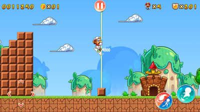 3、跳跃撞击游戏中的问号方块可以获得积分或者道具,蘑菇道具能让人物长大,鲜花可以获得射击能力。