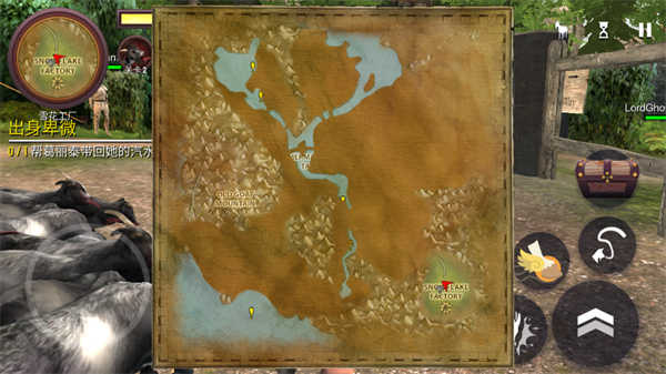 3、游戏采用横屏玩法,左手控制山羊的走动,右手控制视角及各种攻击操作;