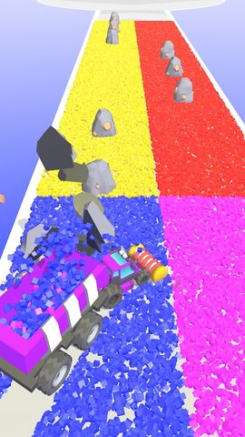 1、玩家驾驶卡车收集各种糖果,游戏提供了许多陷阱和特殊效果
