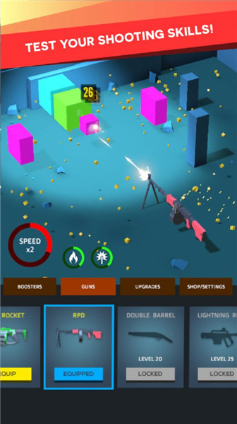 玩家需要使用自己手中的武器来进行射击,将所有的障碍物都粉碎个干净,不断的提升自己的实力。