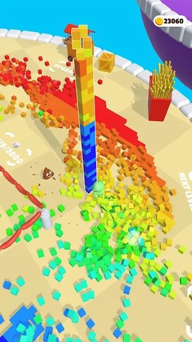 2、收集不同颜色的方块堆叠在一起,金币越多奖励越高。