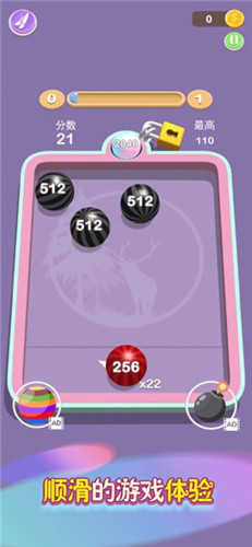 1、在这款游戏中,采用了类似2048的方式来玩弹球乐趣。