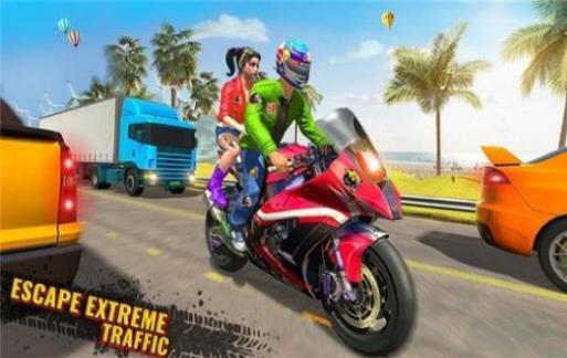 交通摩托车驾驶比赛是一款非常好玩的摩托车竞速游戏,游戏采用3D引擎设计,画面十分清晰,操作简易流畅。驾驶摩托车穿梭在赛道中,展示高超驾驶技巧超越对手,完成海量任务和冒险。游戏提供多款摩托车载具,还有各种酷炫机车皮肤待你解锁,超大地图和丰富多样场景,你可以不断挑战,享受摩托车竞速无限魅力,感兴趣的玩家赶快来下载吧。
