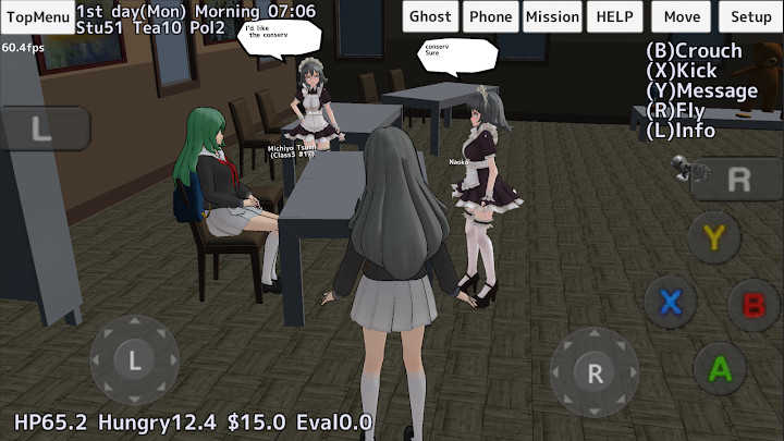 您可以体验到“学校生活”,出席类,买糖果,与同学交谈,加入俱乐部,骑自行车和汽车。最近,女仆咖啡厅,您可以在工作被做。你可以承认其他学生(男孩和女孩)它是成功的承认,你可以骑自行车,汽车与你的爱人。僵尸来了学校,所以请击退来保护你的朋友。