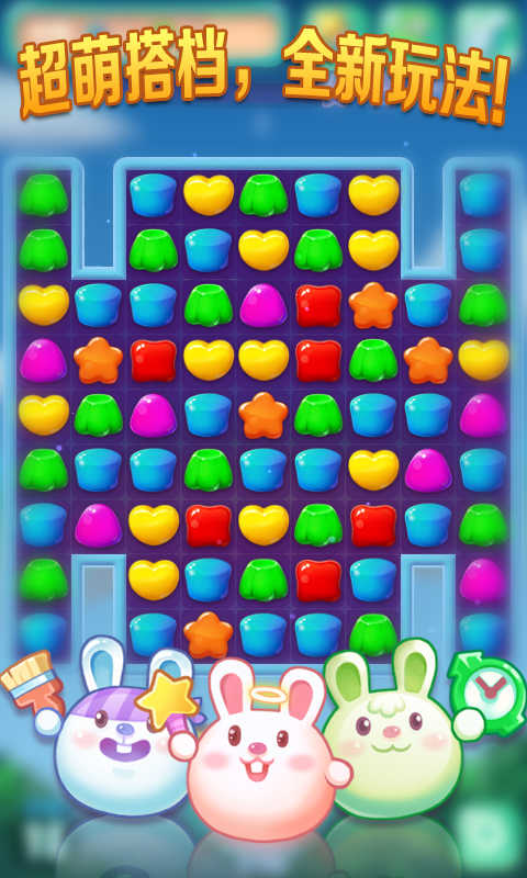 4、还可以结交一些新的萌兔与你一起冒险,一切都一切都尽在《果冻消消乐》的神奇世界里,