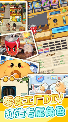 4、玩家通过收集各种各样有趣的零食以及不断研发出新颖的零食英雄来加强自身,随后开启闯荡世界消灭邪恶零食的征战旅途!