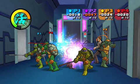 本款由《忍者神龟》动漫改编的游戏,画面的风格虽然是动画,但游戏里的角色却采用了电影里的角色设定风格,外貌较以往的发生了很大的变化。游戏内有多种挑战模式诸如生存模式、测试模式和故事模式等。玩家可以选择故事模式,在玩游戏的同时,好好回味下原著剧情。在生存模式里,一直到选用的角色倒下为止,玩家需要与无穷无尽的敌人进行战斗。另外,游戏内每个人物角色都有属于自己可以升级的特殊的攻击方式和武器,他们的动作连招也十分酷炫。