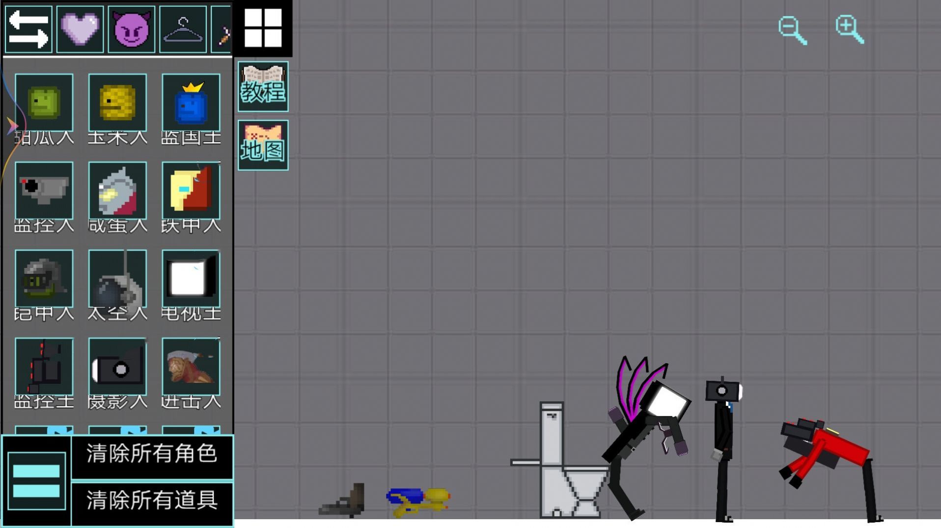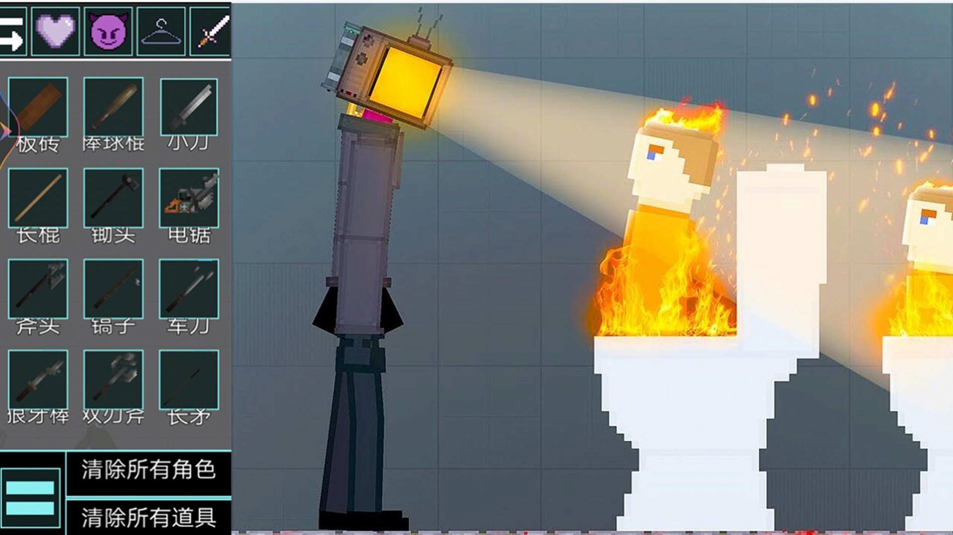 在游戏里有很多不同的模组和武器,玩家可以尽情的闯关,在游戏里有马桶人角色。