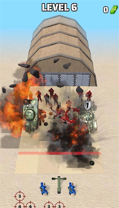 2、多样化的战争武器:玩家可以解锁和升级各种不同类型的武器,包括坦克、炮弹、导弹等,根据不同的敌人选择最有效的武器进行作战。