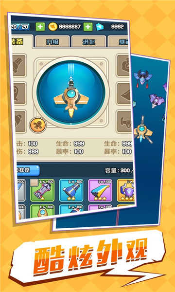 强化不同的武器来提升自己的能力,华丽炫酷的弹幕特效让空战更加震撼。