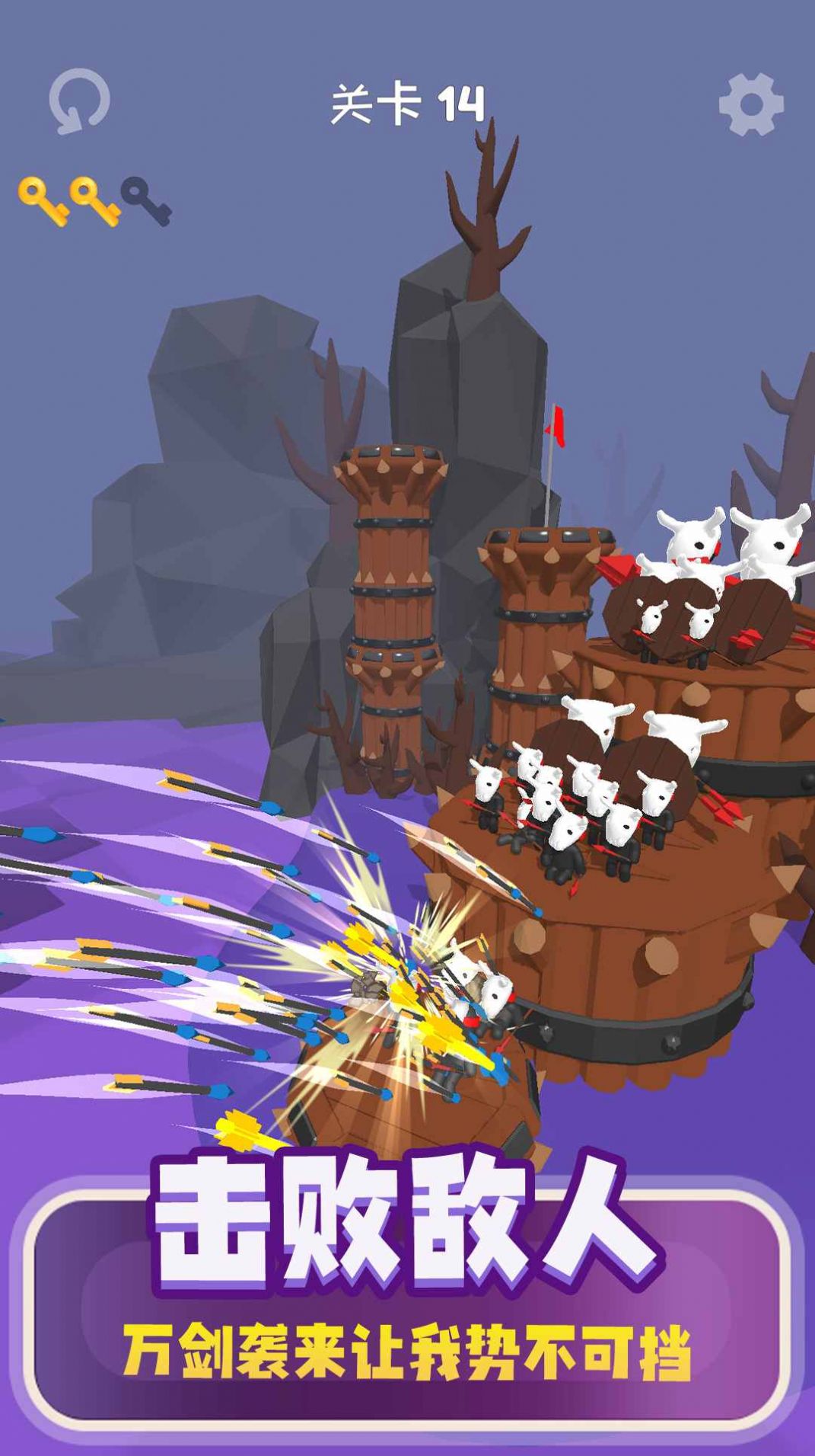 3、这是一款单人射箭竞技游戏,让你在游戏中独自挑战敌人和关卡,展现你的弓箭技艺。