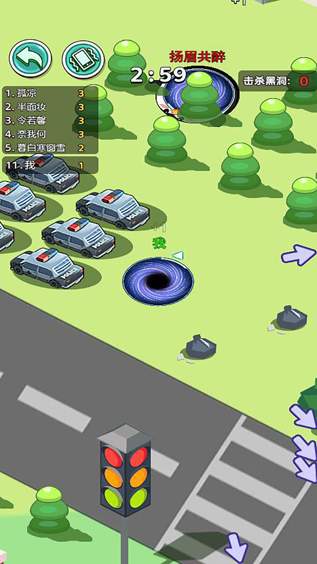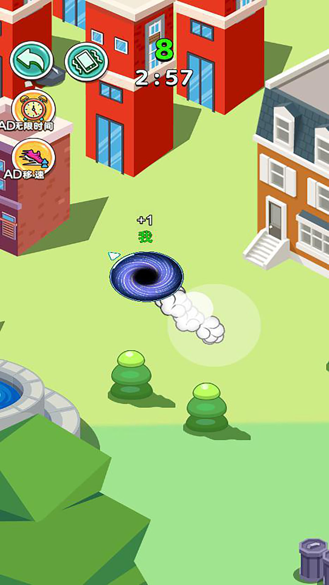 2、玩家只需要用手指轻触或滑动屏幕即可控制黑洞,吞噬城市中的所有元素。游戏操作简单,但同时也让该游戏具有极高的成瘾性;