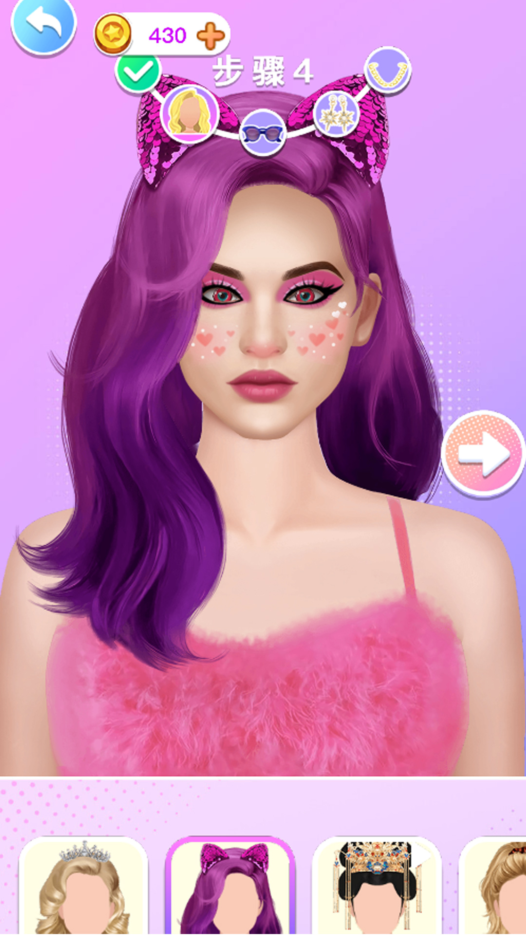 3、随着游戏的进行,不断解锁新的妆容和功能,探索更加丰富的时尚世界,让人感受到无穷的创意和乐趣。