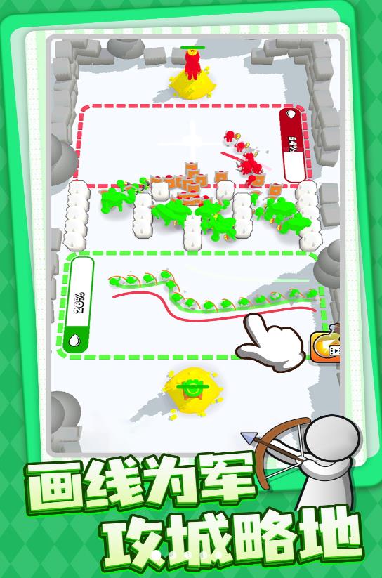 3、采用特殊的画线操作方式,可以画出士兵突击线条,指挥小兵向前英勇冲锋;