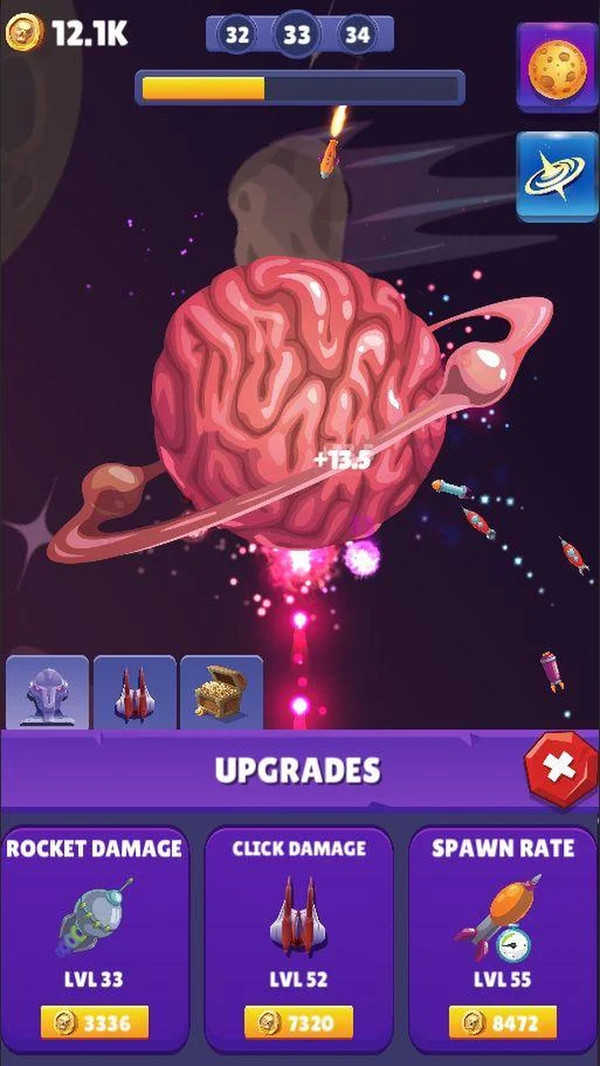 2、行星破坏者收集每日奖励和离线收入,并升级武器或宇宙飞船。