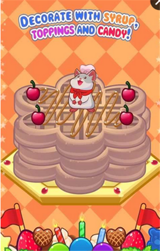 2、帮助可爱的小仓鼠制作美味的华夫饼,自己选择华夫饼的形状和口味,你甚至可以用新鲜美味的水果和糖果来装饰华夫饼。