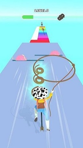 3、玩家可以控制牛仔女孩进行跑酷,并使用手中的套索获得各种道具和资源奖励。