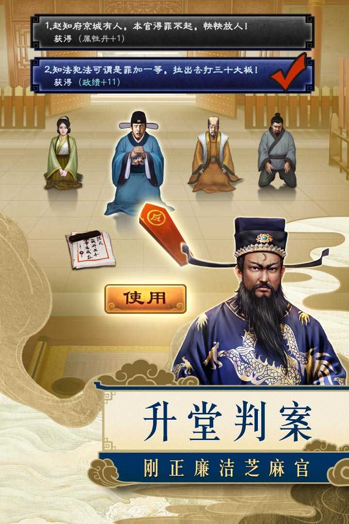 升堂判案当清官,刚正廉洁好榜样。由于《麻雀飞青天》主打模拟宋朝真实官场玩法,那当官判案自然必不可少。
