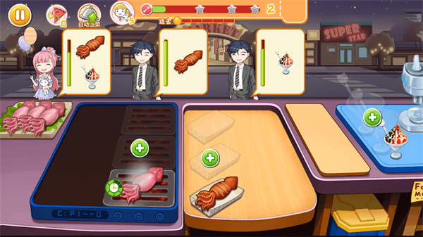 1.解锁更多的原材料,让你的寿司种类增加,你也能学习更多的寿司制作的技巧啦!