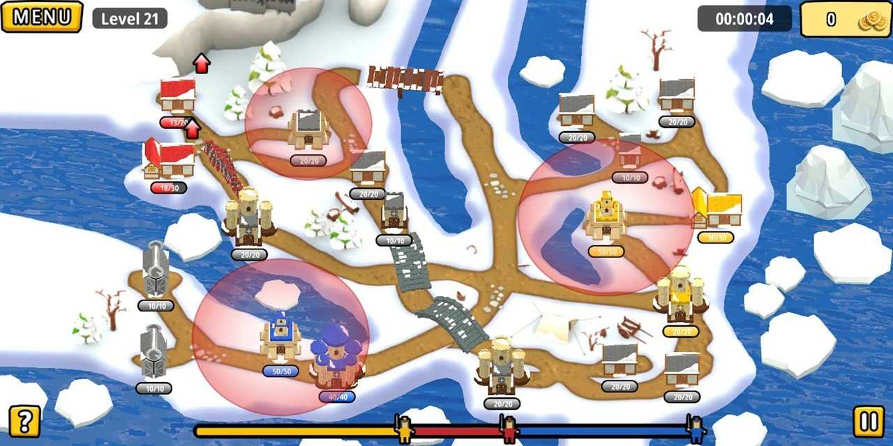 与三个本站的敌人军队作战,时刻都不能放松,因为敌军将会占领你的城堡和塔楼,并摧毁你的军队。