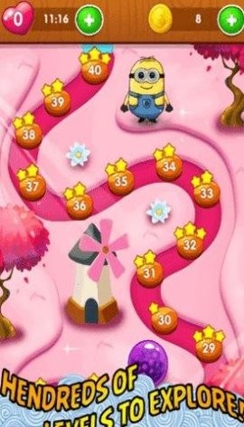 小黄人泡泡射手是一款很好玩的休闲消除游戏,我们一定要很好的去控制好我们的射击方向,这样才能够把这些小泡泡全部都消除掉,整个的游戏画面都是全新的粉色,给我们的闯关心情带来了很好的游戏感受,游戏当中有着超级多的人物,都会给我们带来很不错的观赏效果。