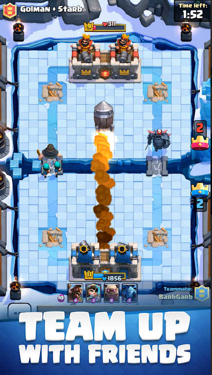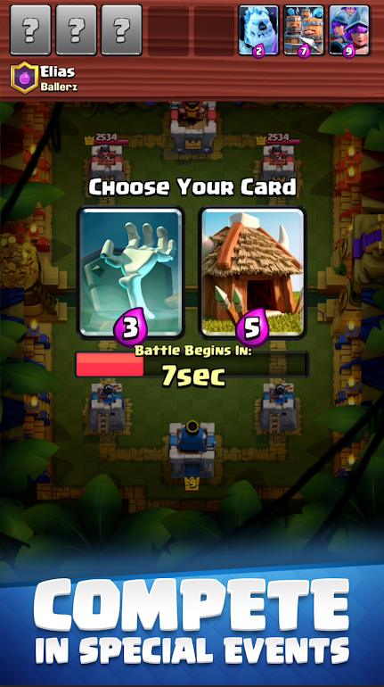 2、攻击塔上的敌人国王和公主,击败对手,赢得奖杯、王冠和竞技场荣誉。建立一个部落,分享卡片,创建自己的战斗圈