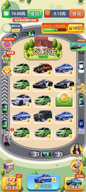 2、各式各样的汽车,等你来收集,结合赛车、融合等多种玩法。