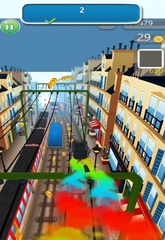 2. 向上滑动,角色会向前跳,跳过障碍,但是高一点列车等的是跳不过的哦。