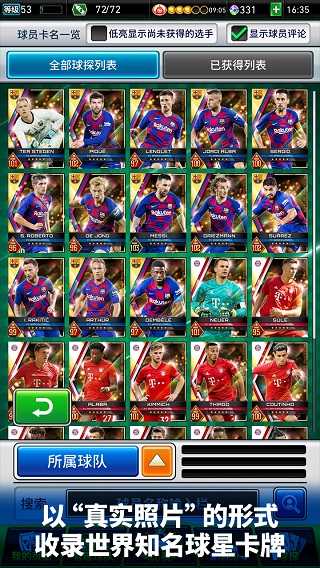 以真实球员照片的形式 收集世界知名球星卡牌!