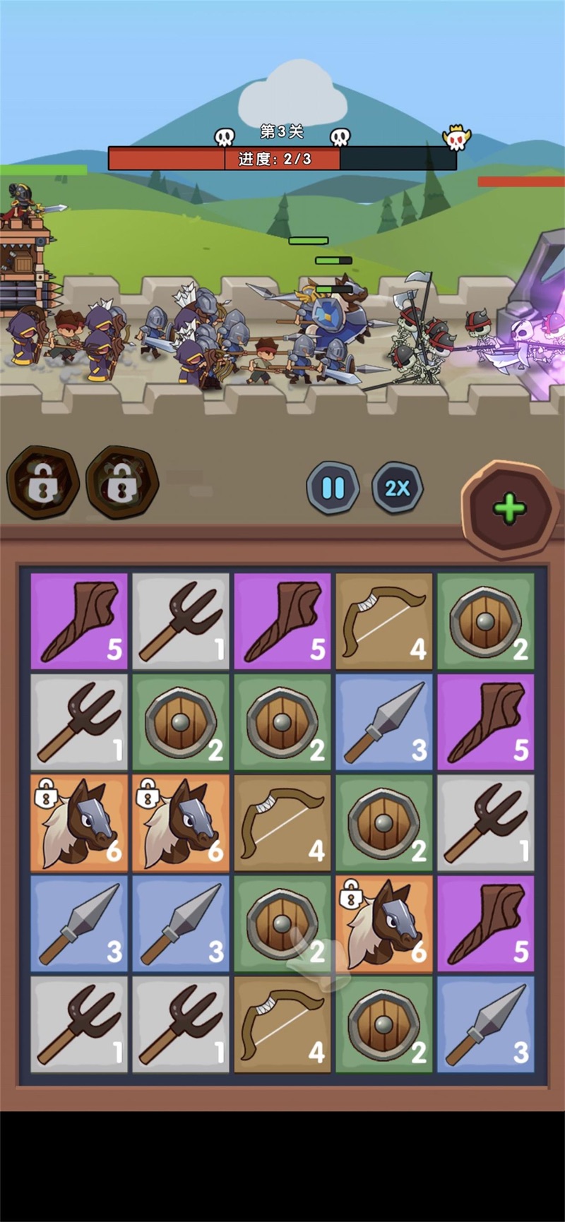 3、独特的三消模式,移动并消除其中的士兵,合成全新的兵种,快速提升自己的战斗实力。
