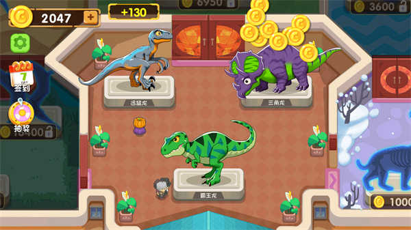 7、将恐龙化石摆放在展馆中可以增加收入,升级市场部、人事部、科技部都将大大增加博物馆的盈利能力。