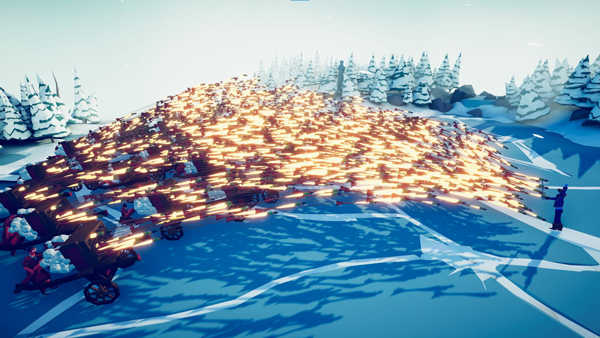 而实际上战斗上的效果,也可能不像你想象的那样严肃。非要做个形容的话,游戏里的红蓝小兵们就像是《人类一败涂地》里玩家操纵的小人一样,属于天生肌无力。你也不用去期待那些兵种会给你带来怎样真实的战争场景,真实的游戏画面就是一大群又一大群的人挤成一堆互相拥抱乱打。