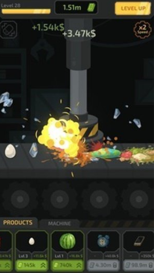 解压工厂玩家需要操控解压机器来碾压各水果,操作简单易上手,关卡多多,十分的耐玩,能很好的减压,消除无聊,在游戏世界中我们将要操纵我们的液压机不断碾压各种道具和物品,游戏玩起来还是相当爽快趣味的,不管是水果、手机、炸弹等等,所有你喜欢不喜欢的都可以统统压碎,完成各种运作才能更好的给工厂带来收益。