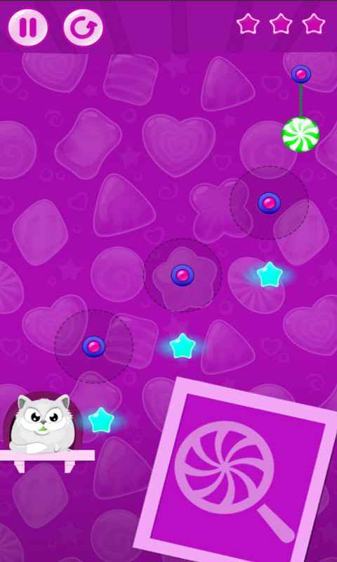 游戏画风可爱,小猫咪的愿望需要你来实现,动动手指割绳子。